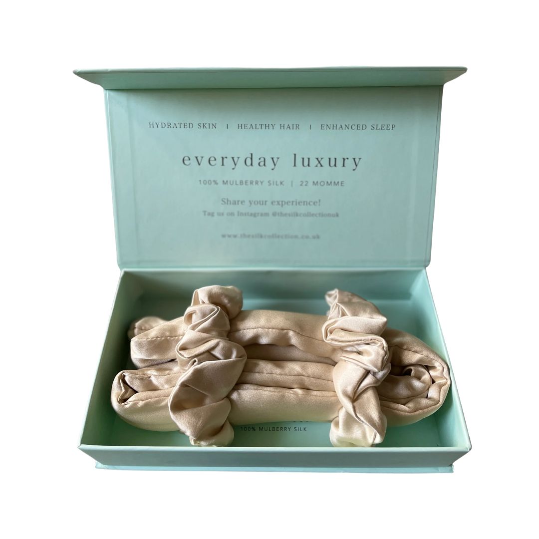 Choose from our best-selling silk sleep masks available individually, or opt for our curated gift sets featuring silk pillowcases, silk scrunchies, and sleep masks - perfect for treating yourself or someone special.