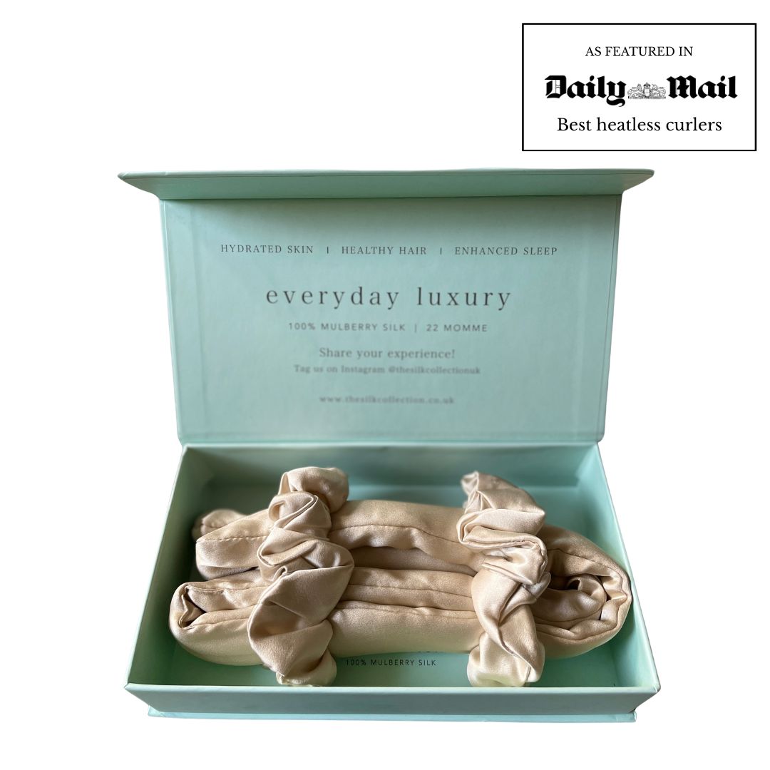 As featured in Daily Mail's Best Heatless Curlers. Give your hair the care it deserves with our Silk Heatless Hair Styling Bundle, designed to give you overnight hair styling without the damaging effects of heat. Perfect for anyone looking to simplify their morning hair routine, this hair styling gift set brings together our best-selling silk essentials that protect, nourish, and style your hair as you sleep.