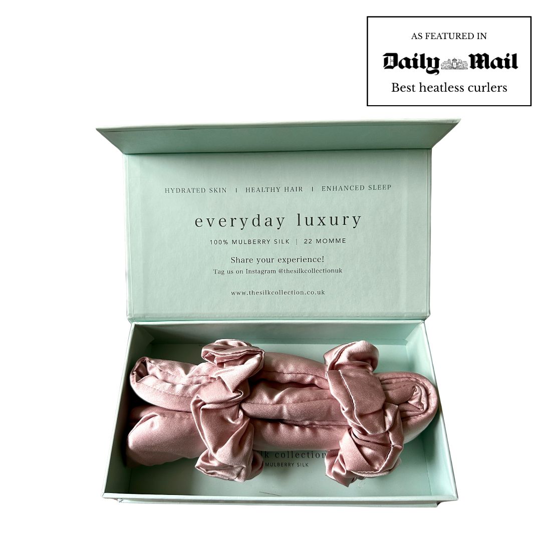 Made from the highest quality 100% mulberry silk, our heatless curler set will give you beautiful, effortless overnight curls without heat damage, whilst the natural properties of mulberry silk will provide further haircare benefits including reduced frizz and extra shine!